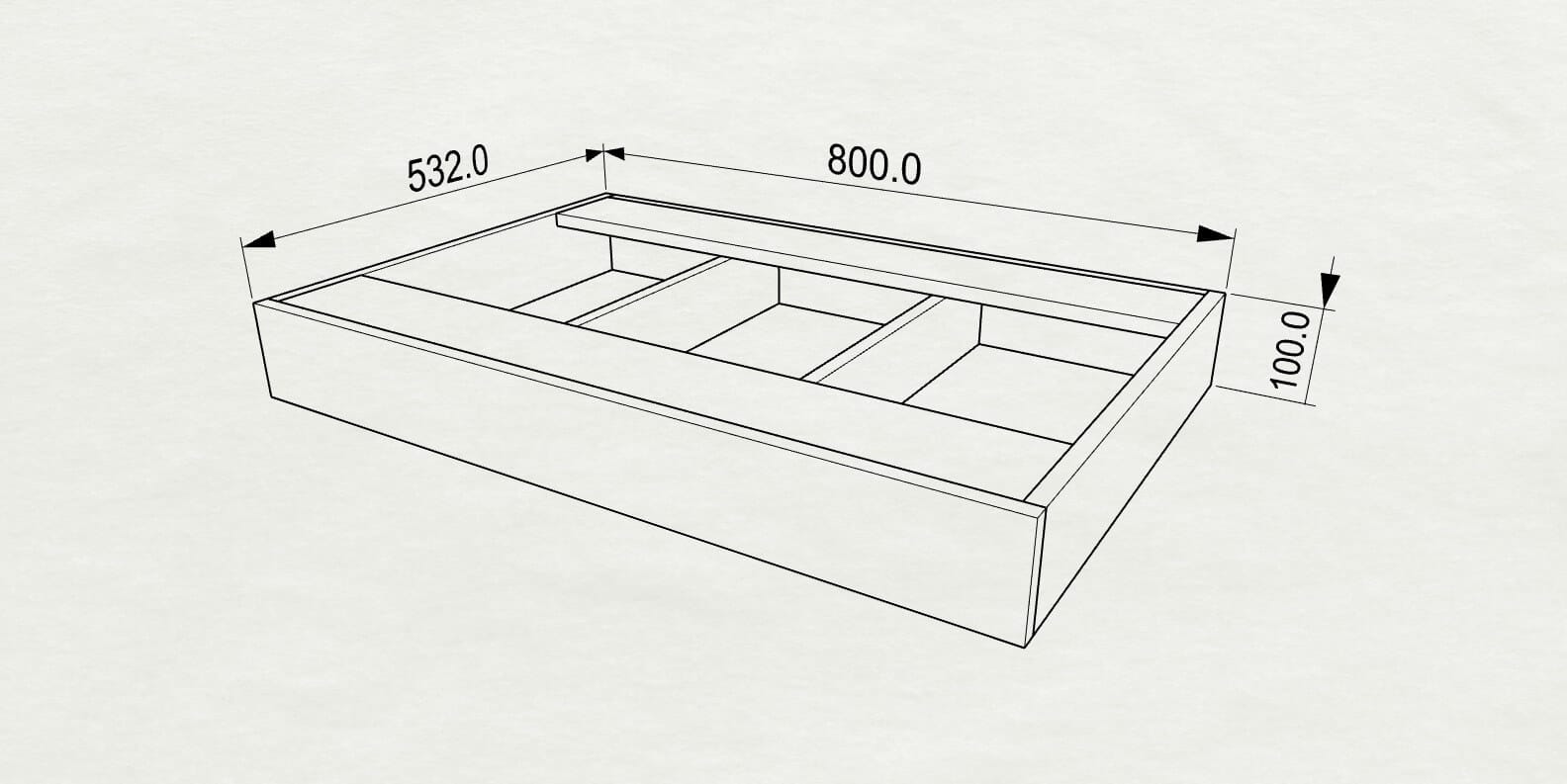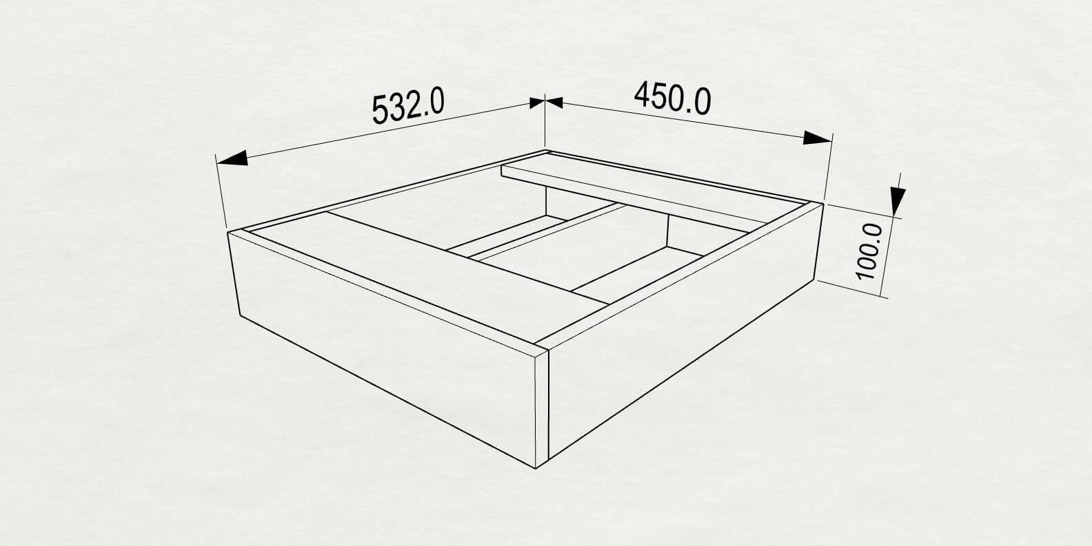 D532 x H100 x W150 / W200 / W300 / W400 / W450 / W500 / W600 / W700 / W800 / W900 / W1000 / W1200